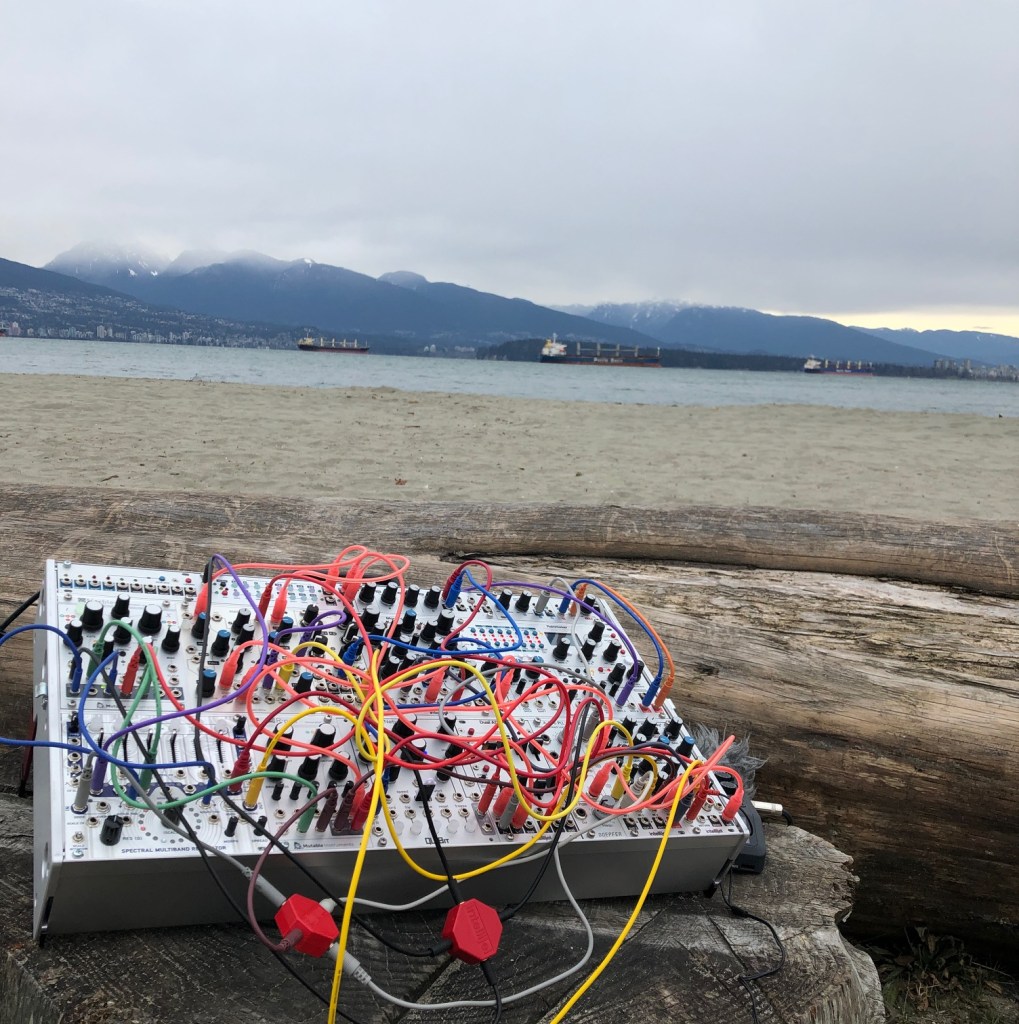 The album first came together as a live set that I gradually refined as I played it out at a few shows. I wanted to make the music as spontaneously as possible, so I created almost everything by jamming on my live rig. This consists of an Elektron Octatrack, Analog Four, Analog RYTM, and a Novation Nova. All of the drums come from the RYTM, and all of the synth sounds from the Analog Four and Nova. The leads are from the Analog Four and the pads are from the Nova, while the bass and arps are split between the two. The Octatrack is the nervous center of the whole thing. It controls playback and pattern selection for the other sequencers and sequences the multi-timbral Nova on six separate tracks. The field recordings play through the Octatrack cue output into the modular for processing. Then all of the audio from the modular comes in on one input pair, and the other set of inputs is everything else (the Nova goes into the A4, the A4 goes into the RYTM, and then the RYTM goes into the Octatrack). The advantage to this is that I can then sample and loop the live input, which is useful when transitioning from one track to another. While performing my live set, I needed to set up a patch on my modular that would give me the most flexibility to work with the various field recordings. Later when doing the individual songs I was able to make a unique patch for each recording, but I used a lot of the same techniques and processes.
