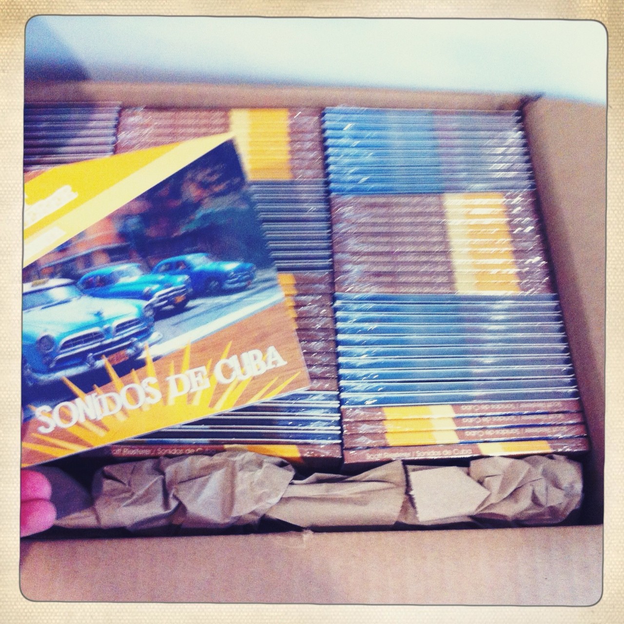 The CDs of Sonidos de Cuba have arrived! I’ve already given a few out to some of my Rockethub supporters and the rest of you will receive them soon. They look great thanks to Tania Clarke’s wonderful album artwork. Next I’ll send off a few to CD Baby so the physical copies will be available there too.